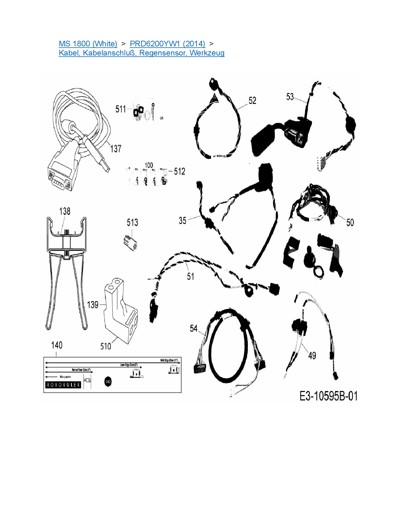 Ersatzteile für Mähroboter Robomow MS 1800 (White) aus der Zeichnung Kabel, Kabelanschluß, Regensensor, Werkzeug: