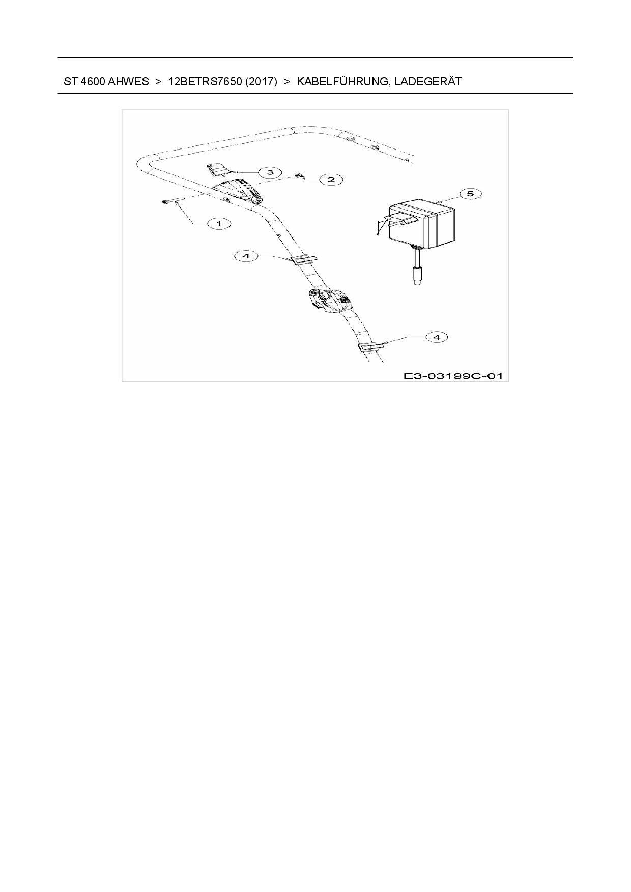 Ersatzteile für Motormäher mit Antrieb Wolf-Garten ST 4600 AHWES aus der Zeichnung Kabelführung, Ladegerät: