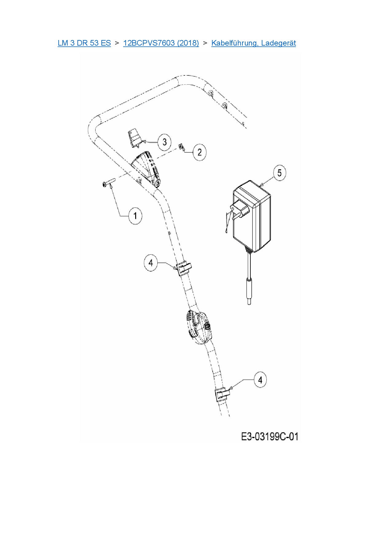 Download Ersatzteil-Zeichnung Cub Cadet LM 3 DR 53 ES Zeichnung Kabelführung, Ladegerät (PDF-Format)