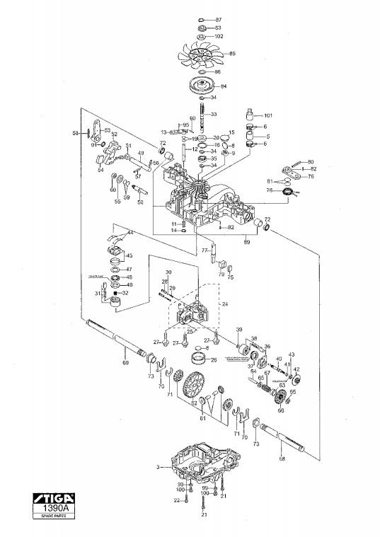Zeichnungen von Stiga Frontaufsitzmäher Park Compact mit Geräte Nr. 13-6143-44 ab Baujahr 2003