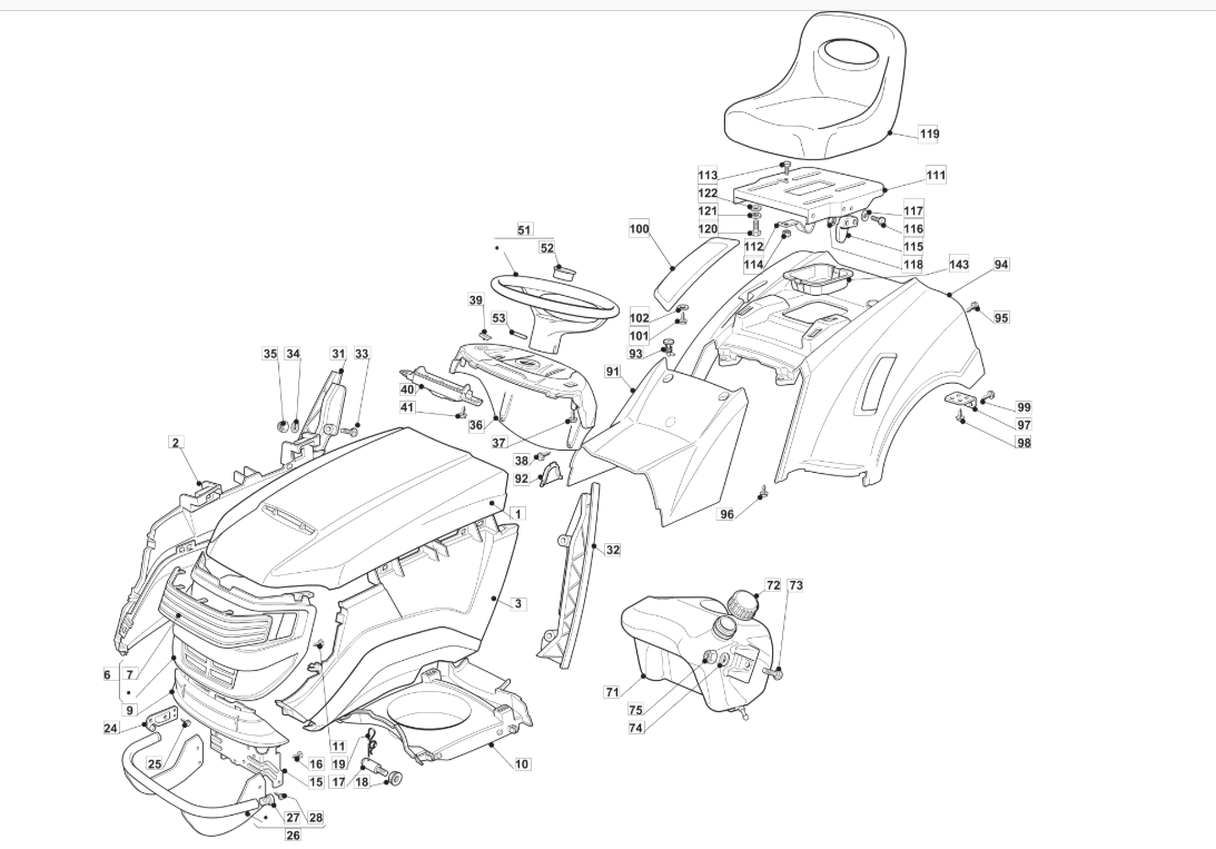 Hier finden Sie alle Ersatzteile für EFCO Rasentraktor EF 101C/16K H Cat.2011 aus der Zeichnung Karosserie: