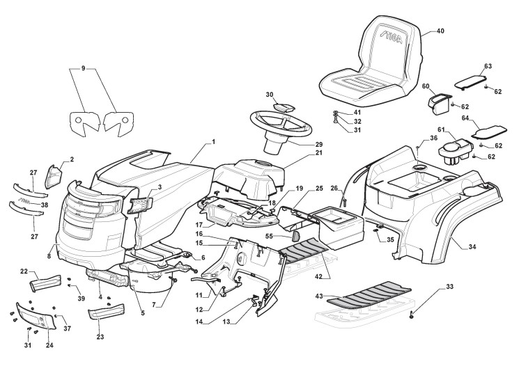 Zeichnungen von Stiga Aufsitzmäher ESTATE 3084 H mit Geräte Nr. 2T2110281/14 ab Baujahr 2014