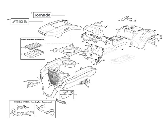 Zeichnungen von Stiga Aufsitzmäher TORNADO 398 M mit Geräte Nr. 2T0510481/ST3 ab Baujahr 2022