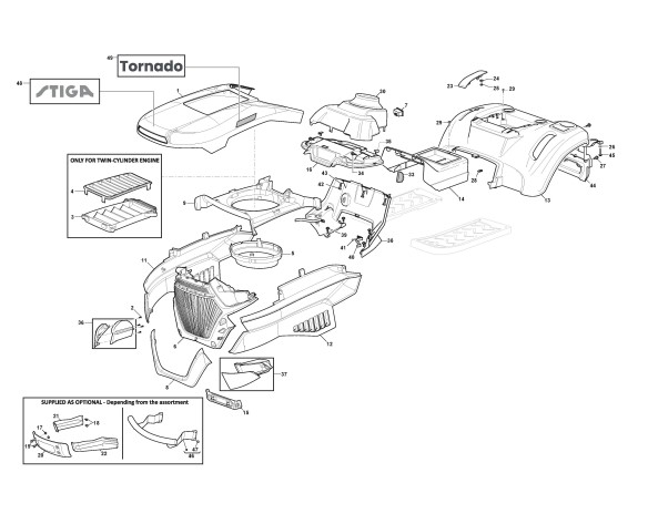 Zeichnungen von Stiga Aufsitzmäher TORNADO SPECIAL mit Geräte Nr. 2T1200381/ST2 ab Baujahr 2022