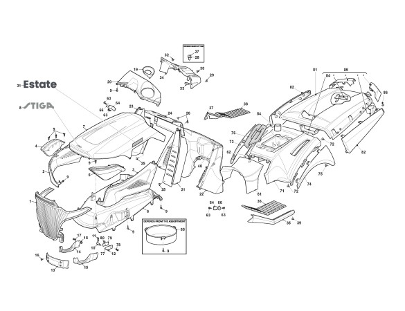 Zeichnungen von Stiga Aufsitzmäher ESTATE 9122 W mit Geräte Nr. 2T1310381/ST2P ab Baujahr 2022