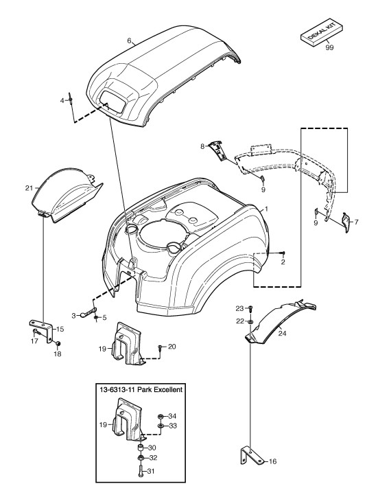 Zeichnungen von Stiga Frontaufsitzmäher Park Consumer High mit Geräte Nr. 13-6196-25 ab Baujahr 2009