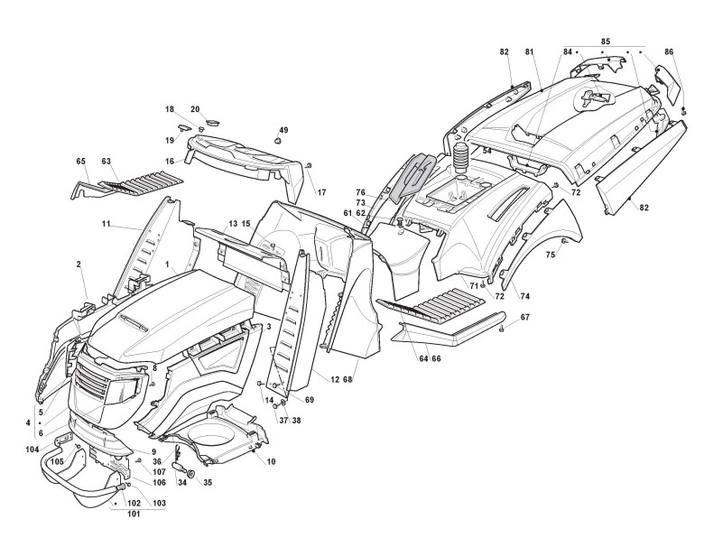 Hier finden Sie alle Ersatzteile von Mountfield Aufsitzmäher Sammelfunktion 102 cm (Geräte Nr 2T0730483/M10) ab 2010 aus der Zeichnung Karrosserie (2):