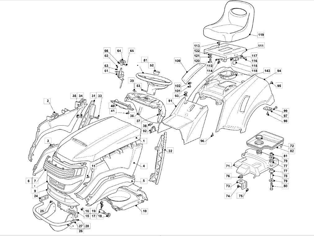 Hier finden Sie alle Ersatzteile für Oleo-Mac Rasentraktor OM 93C/13,5H France Cat. 2008 (nur für Frankreich) aus der Zeichnung für Karrosserie: