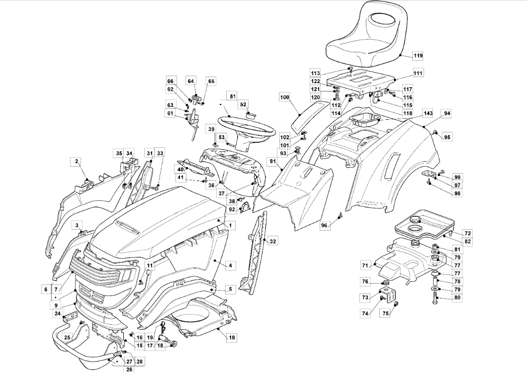 Hier finden Sie alle Ersatzteile für Oleo-Mac Rasentraktor OM 93C/13,5M Cat.2008 aus der Zeichnung für Karrosserie: