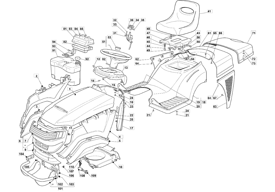 Hier finden Sie alle Ersatzteile für Oleo-Mac Rasentraktor OM 92C/13,5M Cat.2007 aus der Zeichnung für Karrosserie: