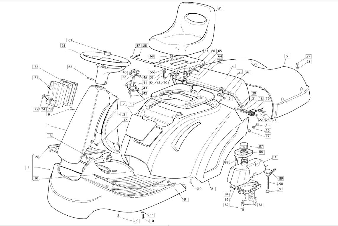 Hier finden Sie alle Ersatzteile für Oleo-Mac Rasentraktor OM 72C/12,5H Cat.2007 aus der Zeichnung für Karrosserie: