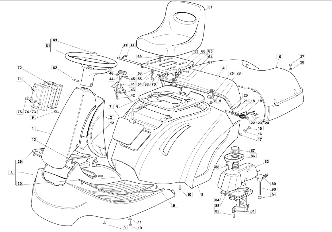 Hier finden Sie alle Ersatzteile für Oleo-Mac Rasentraktor OM 72C/12,5M Cat.2006 aus der Zeichnung für Karrosserie:
