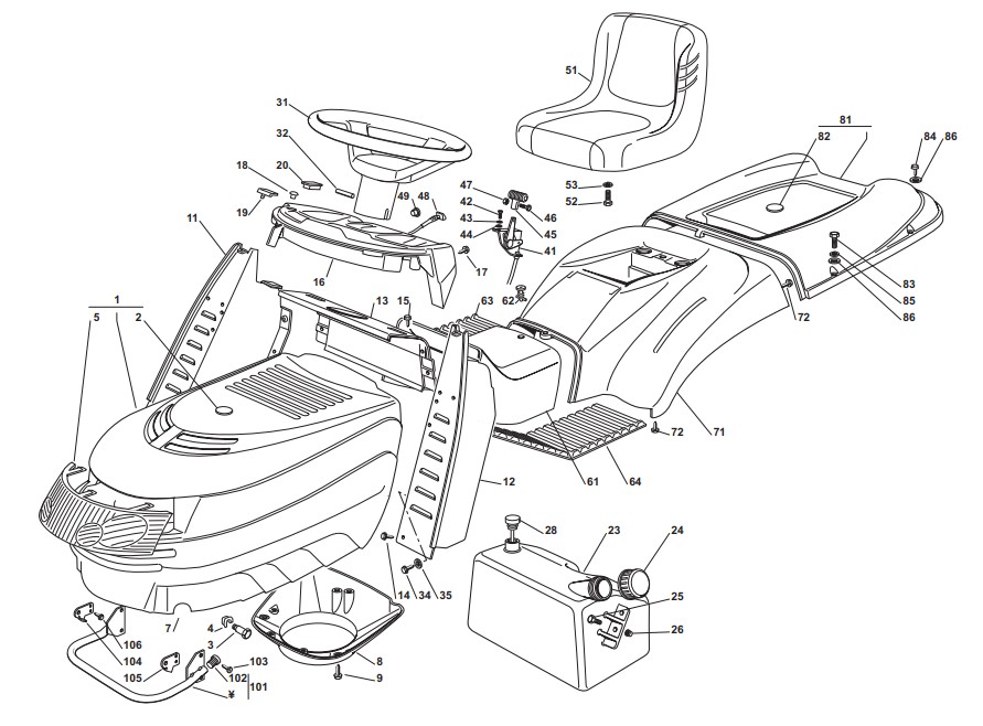 Ersatzteile für Dolmar Rasentraktoren TM-102.18 H Bj. 2012 Karrosserie: