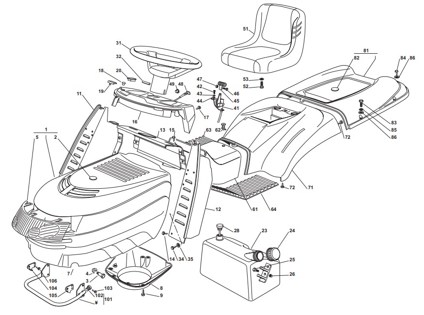 Ersatzteile für Dolmar Rasentraktoren TM-102.20 H2 Bj. 2011 Karrosserie: