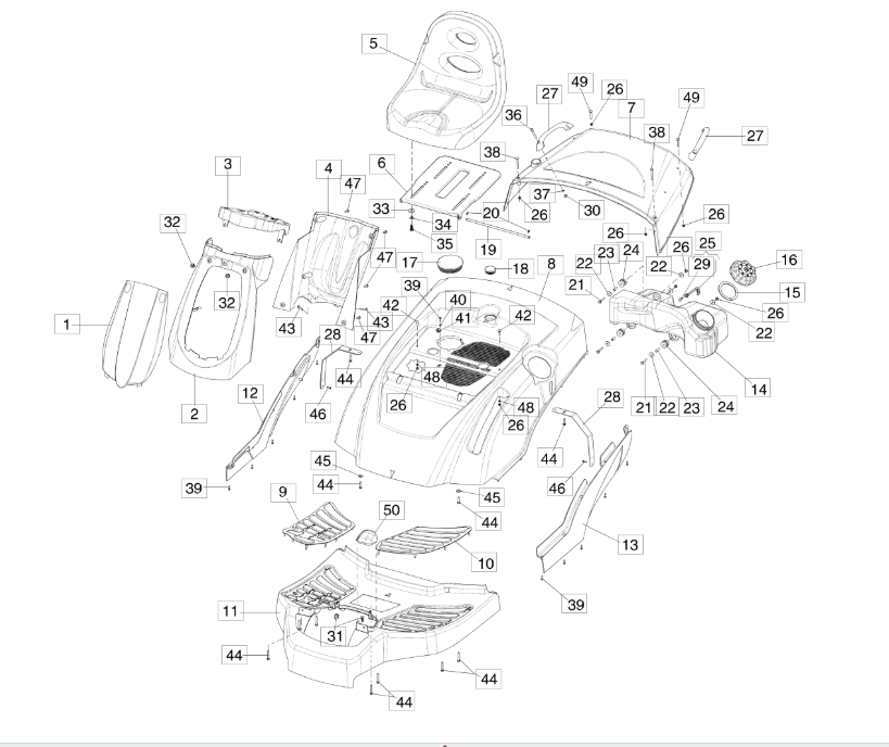 Hier finden Sie alle Ersatzteile für Oleo-Mac Rasentraktor MISTRAL 72/13 H (4in1) e EURO 5 aus der Zeichnung für Karrosserie: