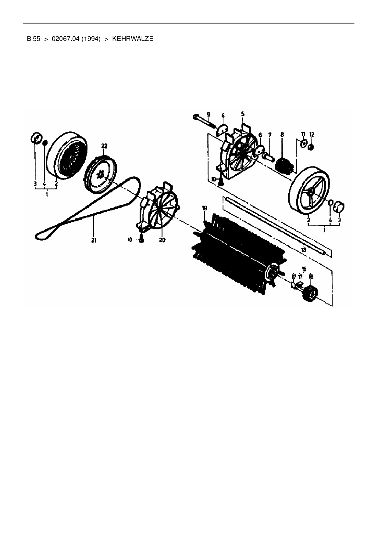 Ersatzteile für Handkehrmaschine Gutbrod B 55 aus der Zeichnung Kehrwalze: