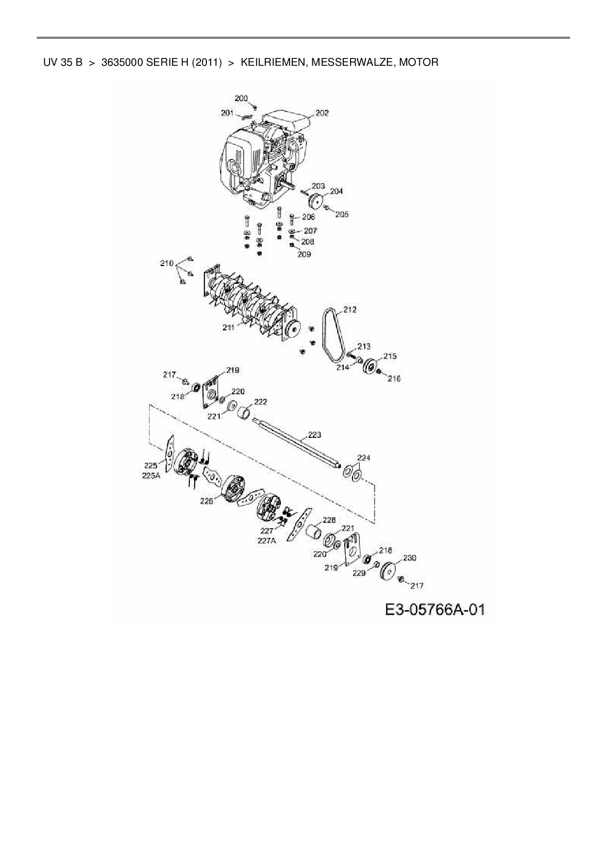 Download Ersatzteil-Zeichnung Wolf-Garten UV 35 B Zeichnung Keilriemen, Messerwalze, Motor (PDF-Format)