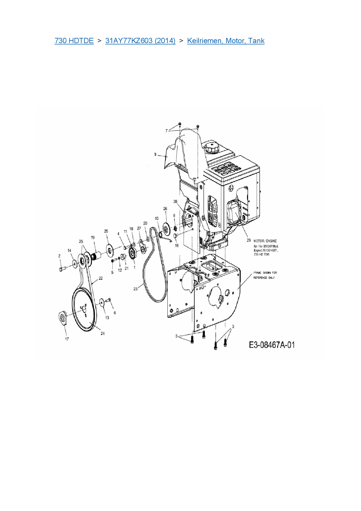 Ersatzteile für Schneefräse Cub Cadet 730 HDTDE aus der Zeichnung Keilriemen, Motor, Tank: