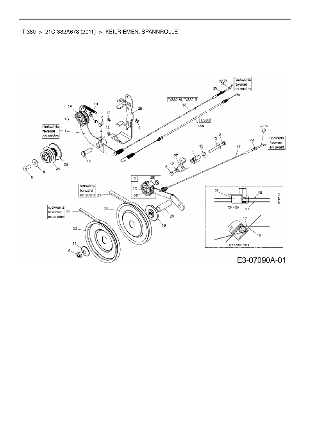 Ersatzteile für Motorhacke MTD T 380 aus der Zeichnung Keilriemen, Spannrolle: