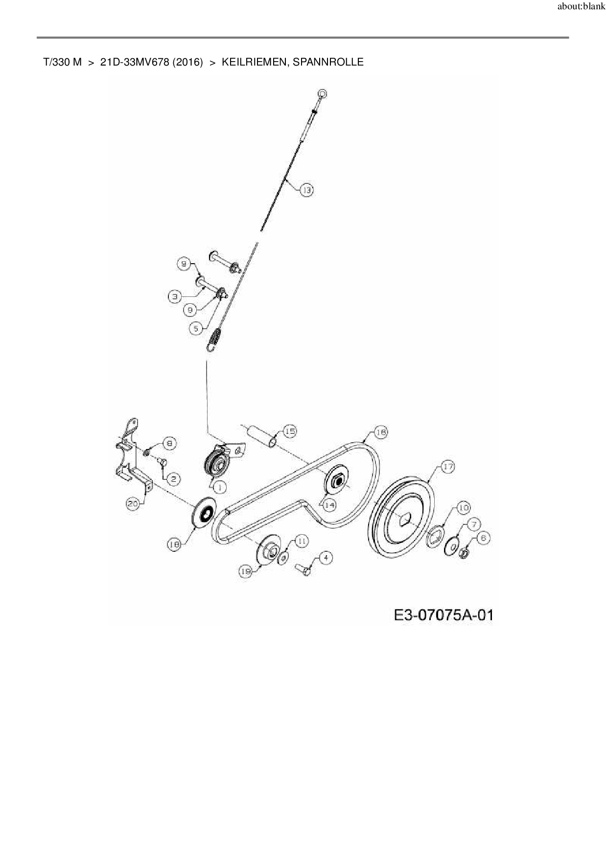 Ersatzteile für Motorhacke MTD T/330 M aus der Zeichnung Keilriemen, Spannrolle:
