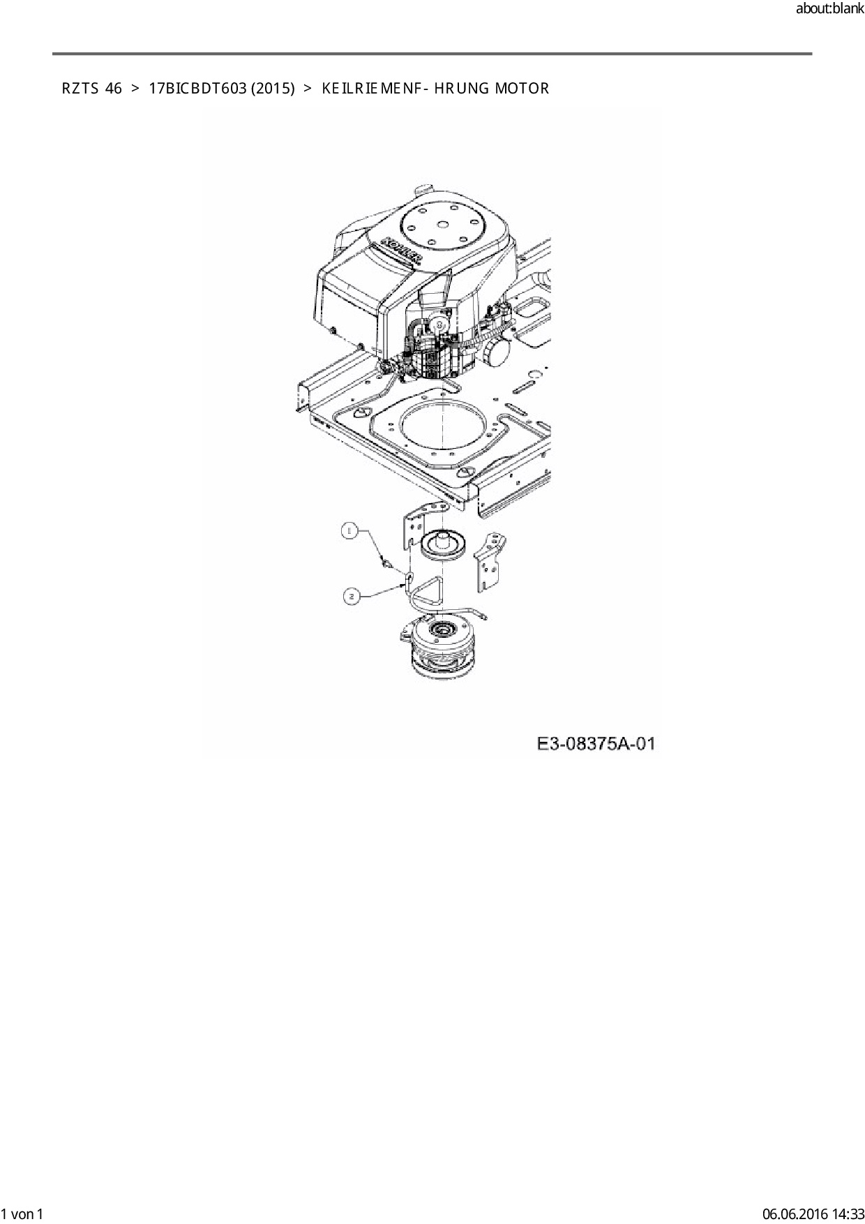 Ersatzteile für Zero Turn Cub Cadet RZTS 46 aus der Zeichnung Keilriemenführung Motor: