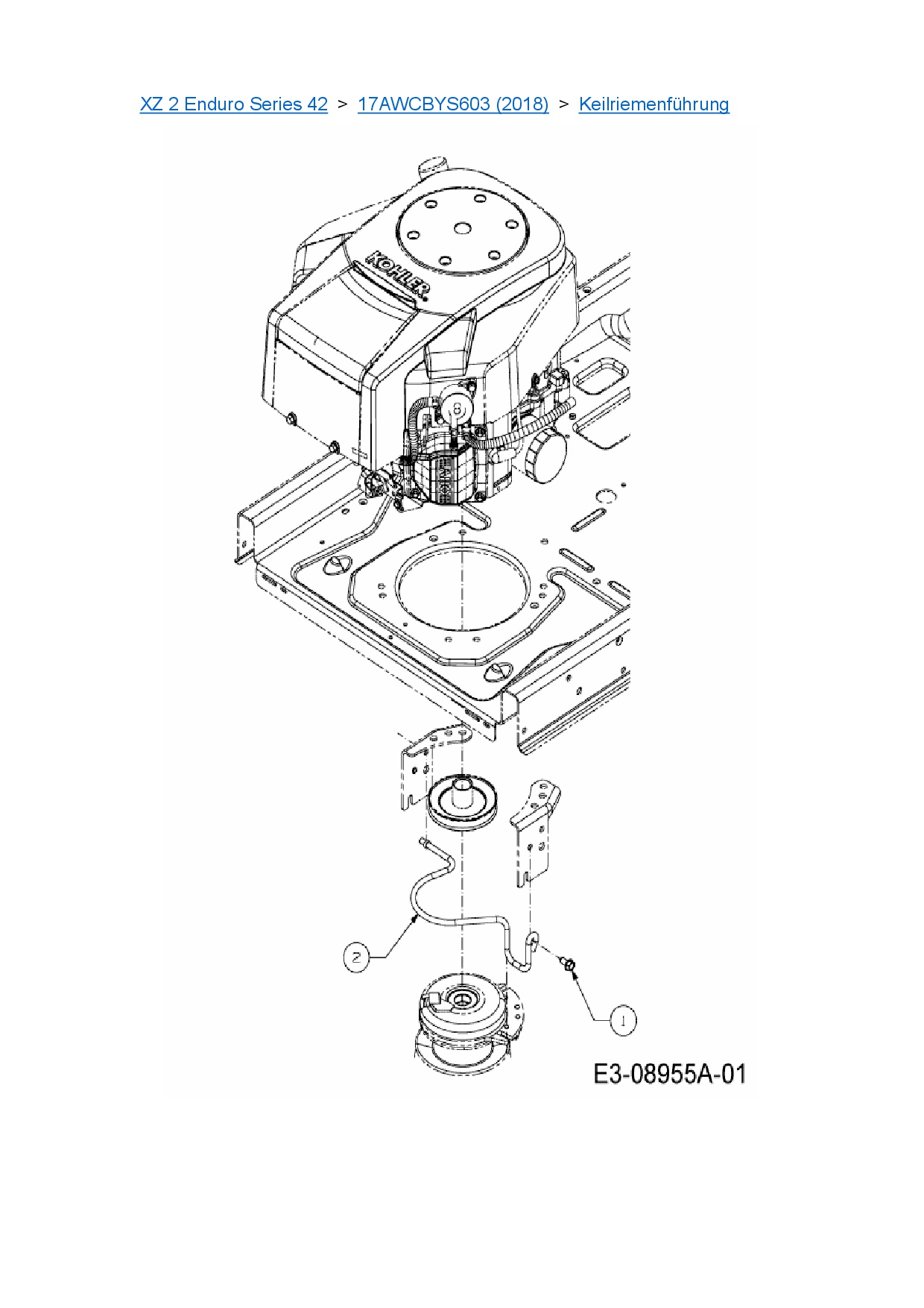 Ersatzteile für Zero Turn Cub Cadet XZ 2 Enduro Series 42 aus der Zeichnung Keilriemenführung: