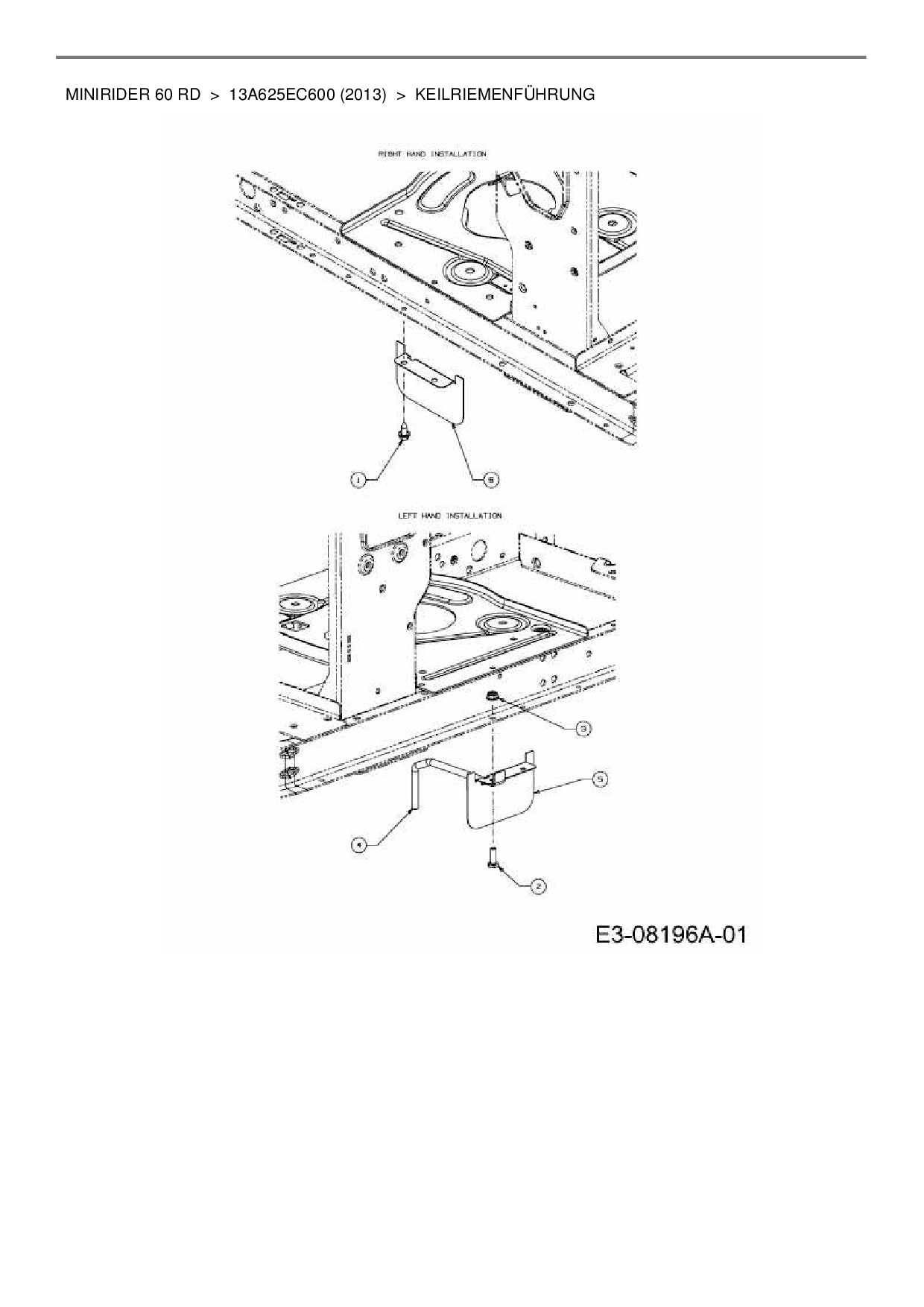 Ersatzteile für Rasentraktor MTD Minirider 60 RD aus der Zeichnung Keilriemenführung: