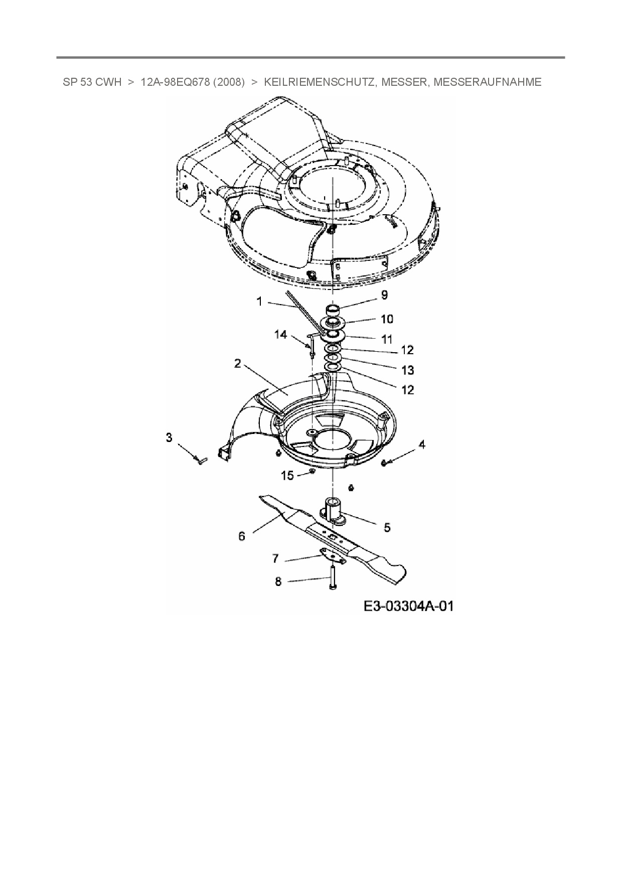 Ersatzteile für Motormäher mit Antrieb MTD SP 53 CWH aus der Zeichnung Keilriemenschutz, Messer, Messeraufnahme: