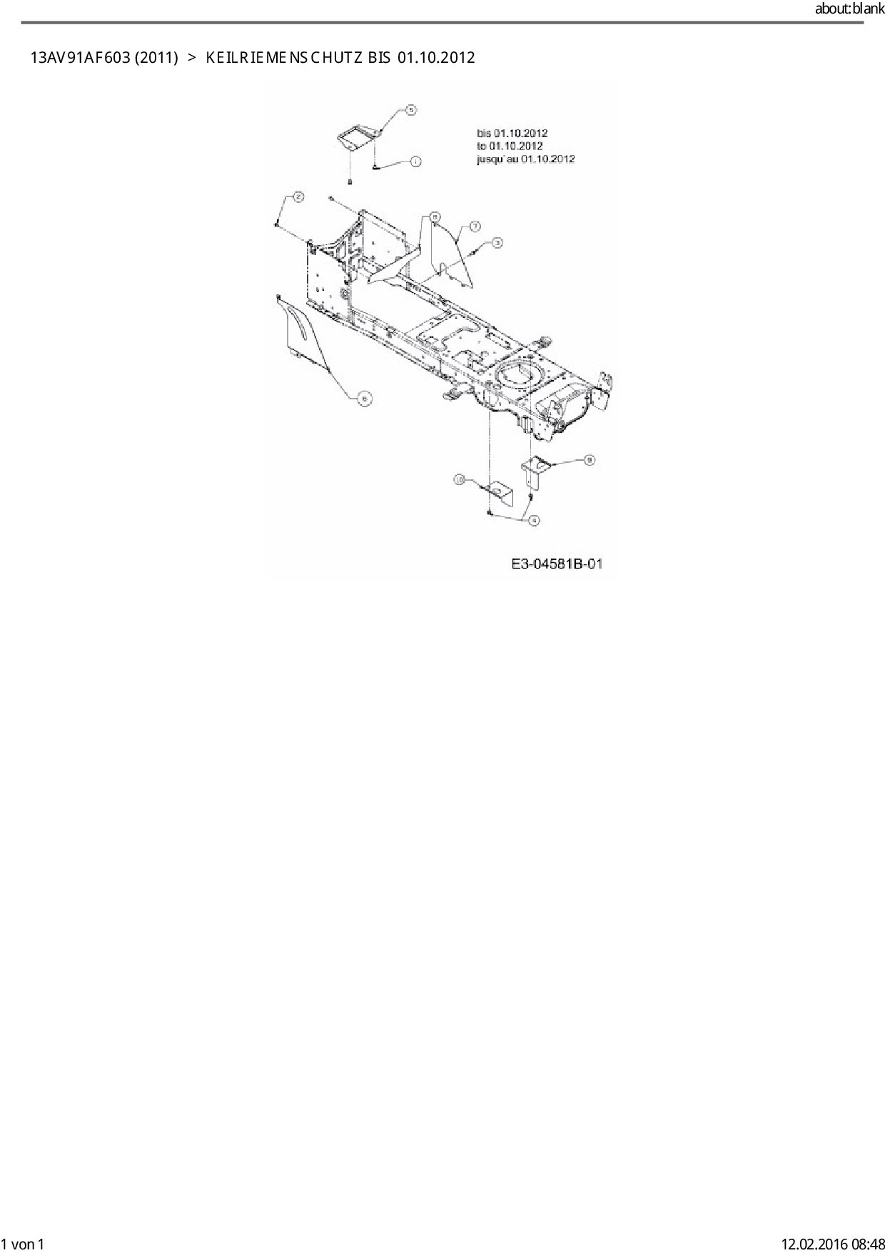 Ersatzteile für Rasentraktor Cub Cadet CC 1017 aus der Zeichnung Keilriemenschutz bis 01.10.2012: