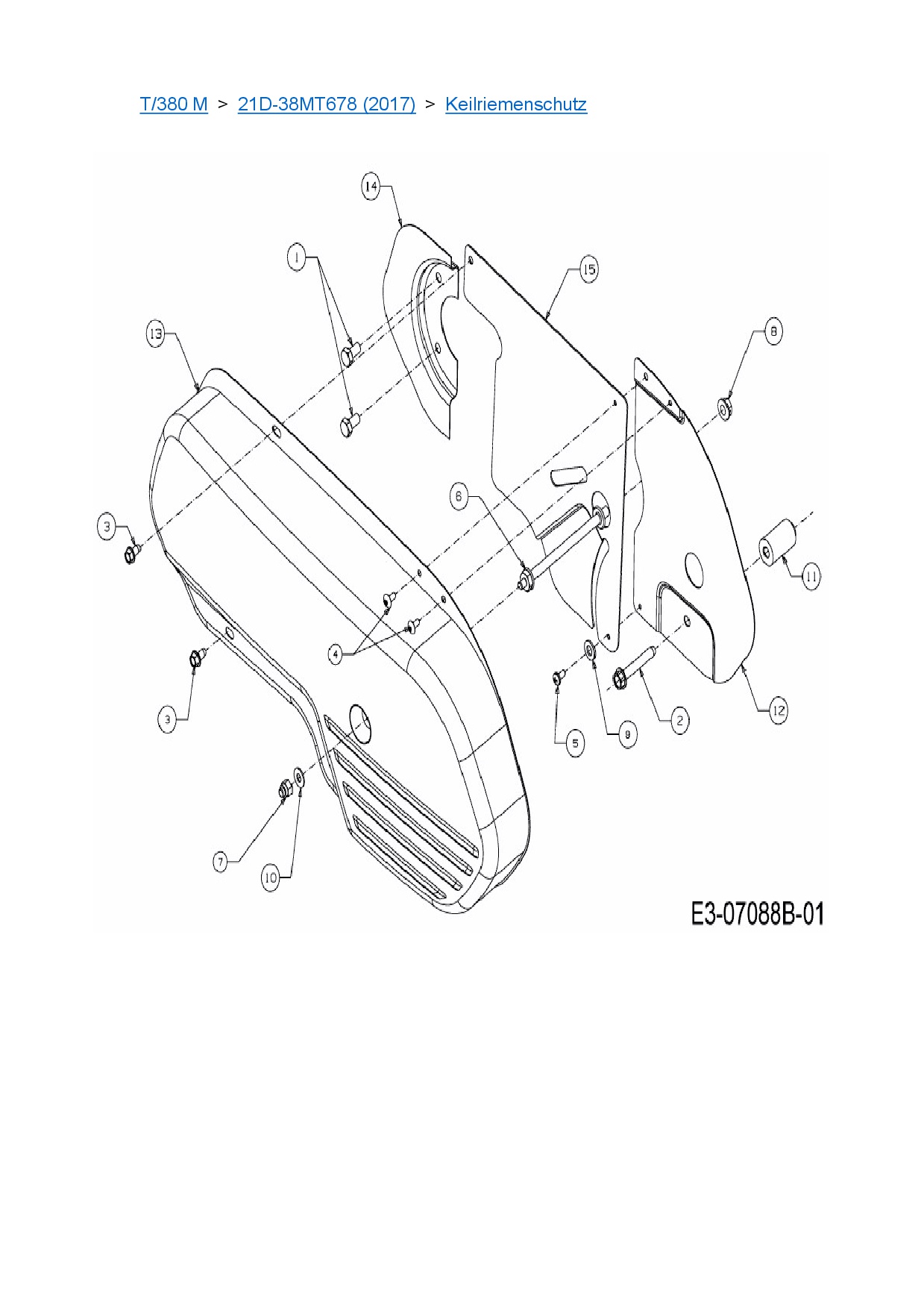 Ersatzteile für Motorhacke MTD T/380 M aus der Zeichnung Keilriemenschutz: