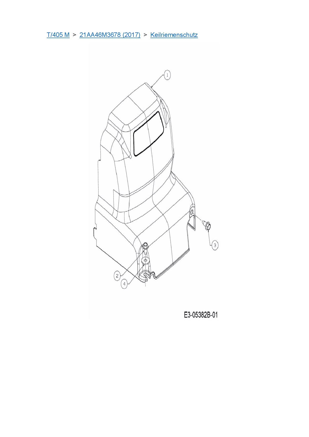 Ersatzteile für Motorhacke MTD T/405 M aus der Zeichnung Keilriemenschutz: