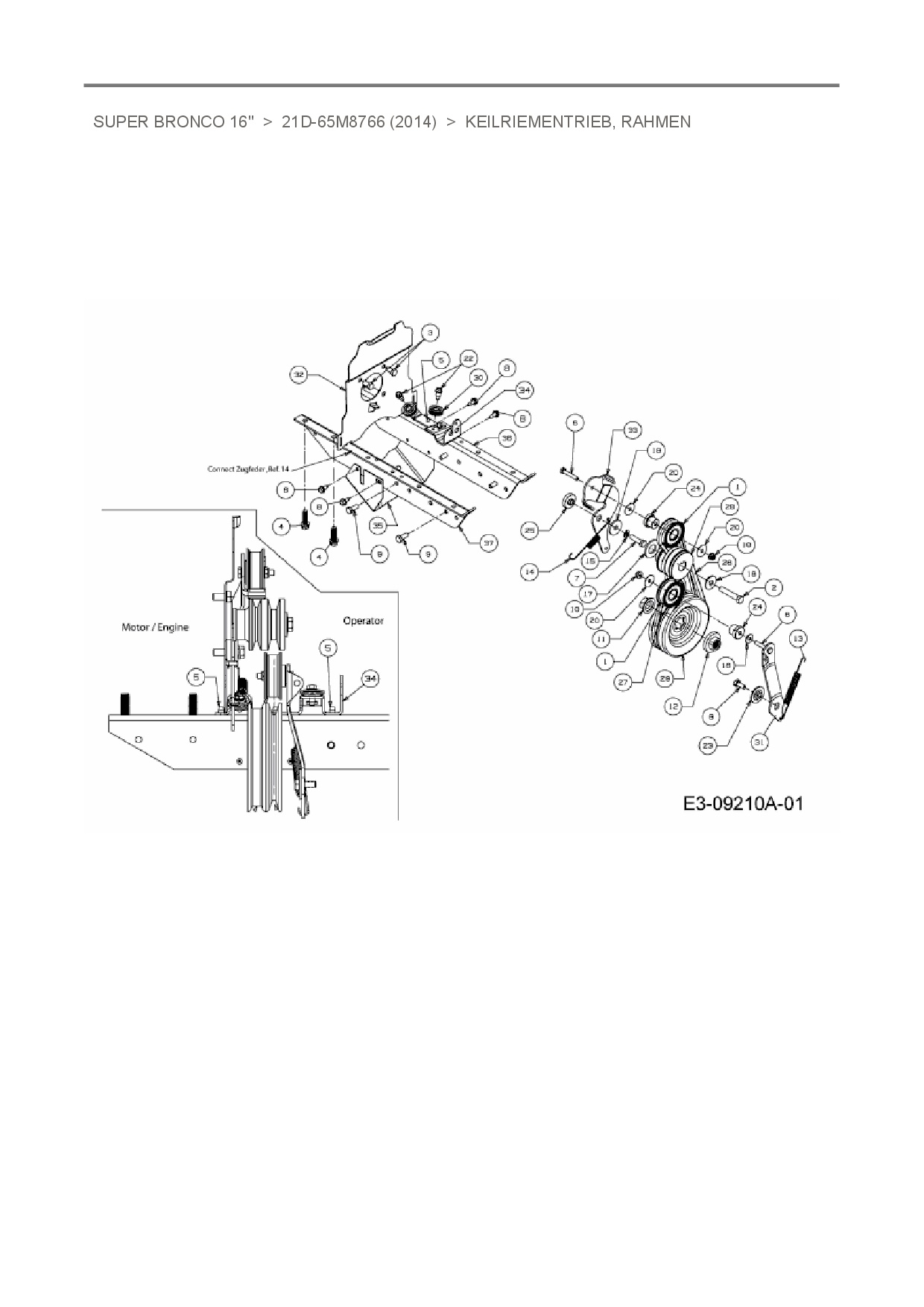 Ersatzteile für Motorhacke Troy-Bilt Super Bronco 16" aus der Zeichnung Keilriementrieb, Rahmen: