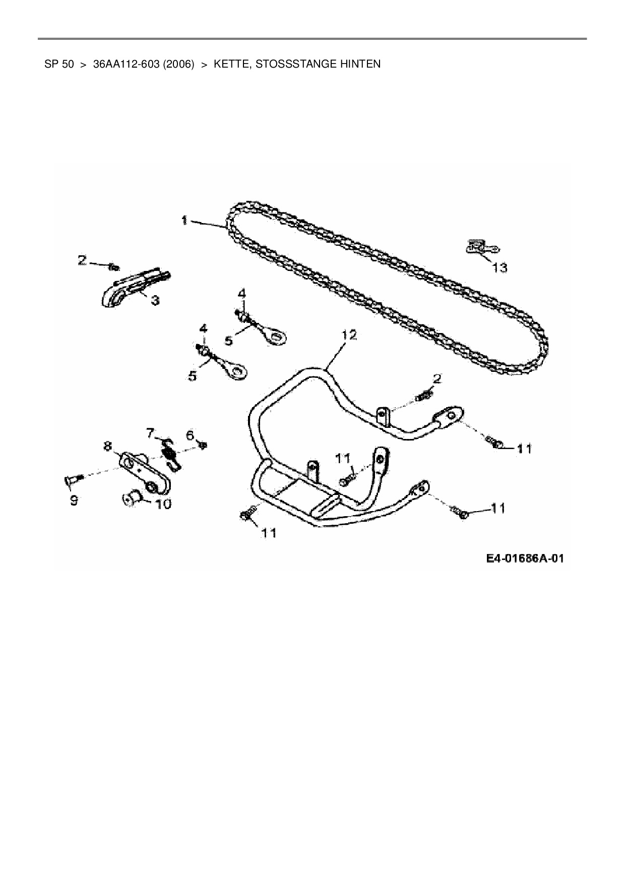 Ersatzteile für Quad Cub Cadet SP 50 aus der Zeichnung Kette, Stoßstange hinten: