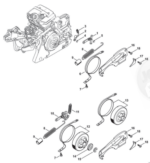 Hier finden Sie alle Ersatzteile von Stihl Benzin-Motorsägen MS 241 C-M VW der Zeichnungsgruppe Kettenbremse: