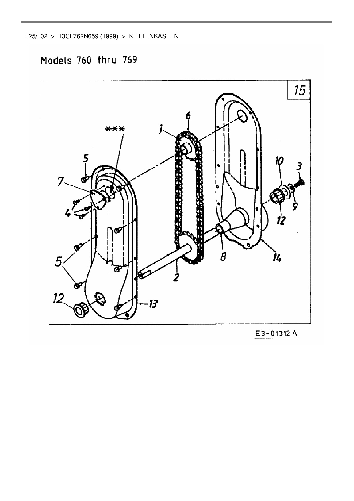 Ersatzteile für Rasentraktor Mastercut 125/102 aus der Zeichnung Kettenkasten: