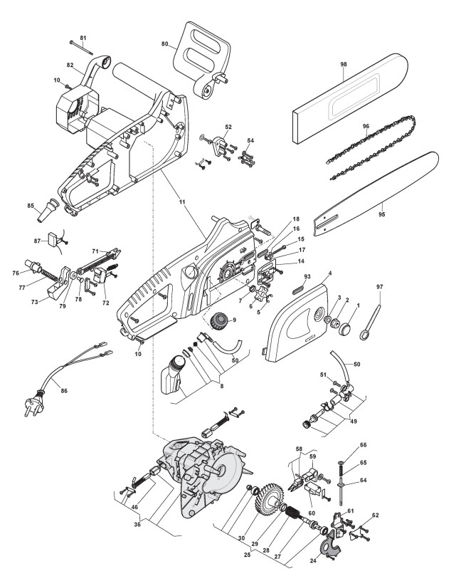 Zeichnungen von Alpina Kettensägen EA 1800 mit Geräte Nr. 292614000/11 ab Baujahr 2017