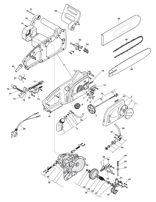 Zeichnungen von Alpina Kettensägen EA 2000 Q mit Geräte Nr. 292616100/11 ab Baujahr 2011