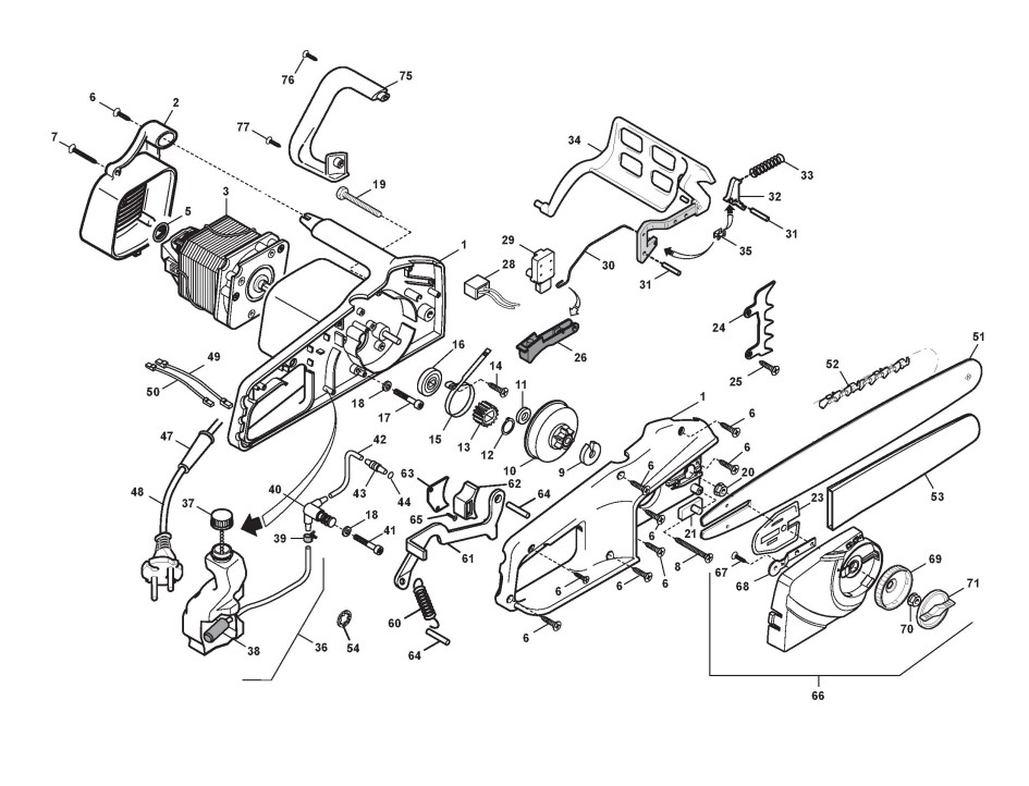 Zeichnungen von Alpina Kettensägen ES 202 Q mit Geräte Nr. 293016100/08 ab Baujahr 2011