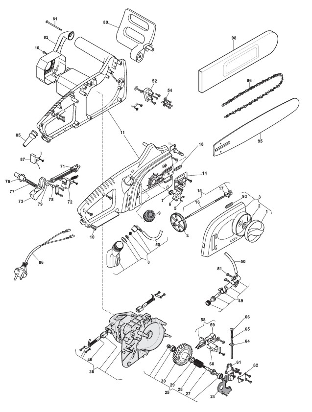 Zeichnungen von Alpina Kettensägen EA 2000 Q mit Geräte Nr. 292616100/11 ab Baujahr 2012