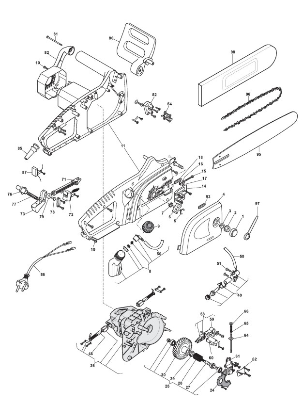 Zeichnungen von Alpina Kettensägen EA 1800 mit Geräte Nr. 292616000/11 ab Baujahr 2011