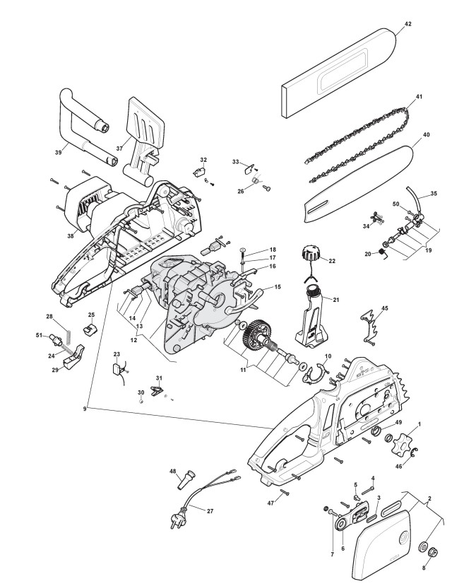 Zeichnungen von Alpina Kettensägen A 180 E mit Geräte Nr. 292714020/ALP ab Baujahr 2012