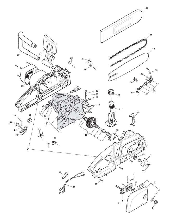 Zeichnungen von Alpina Kettensägen C 2.0 E mit Geräte Nr. 292716040/11 ab Baujahr 2015