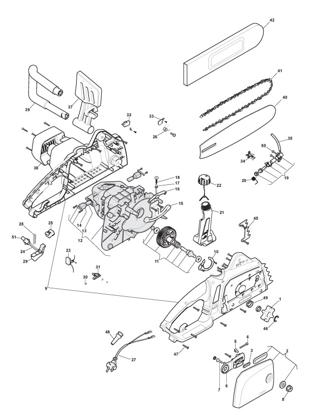 Zeichnungen von Alpina Kettensägen C 2.2 E mit Geräte Nr. 292716060/11 ab Baujahr 2012