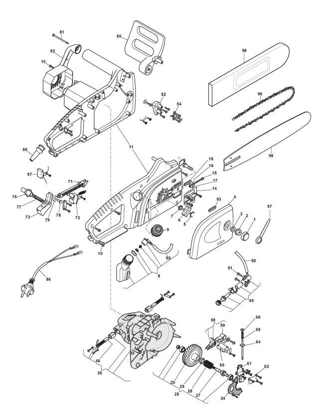 Zeichnungen von Alpina Kettensägen CP 1.8 mit Geräte Nr. 292614001/ALP ab Baujahr 2017