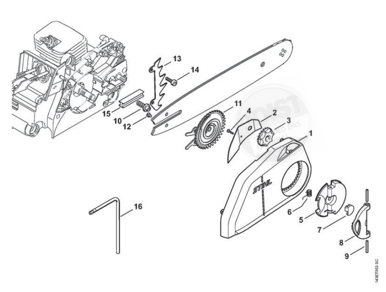 Hier finden Sie alle Ersatzteile von Stihl Benzin-Motorsägen 017 der Zeichnungsgruppe Kettenschnellspannung: