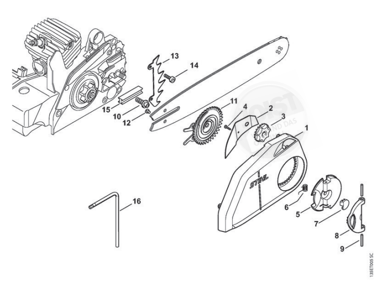 Hier finden Sie alle Ersatzteile von Stihl Benzin-Motorsägen 023 der Zeichnungsgruppe Kettenschnellspannung:
