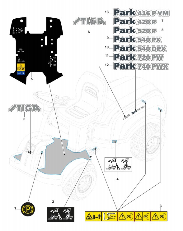 Zeichnungen von Stiga Frontaufsitzmäher Park Consumer High mit Geräte Nr. 2F6220511/S16 ab Baujahr 2018