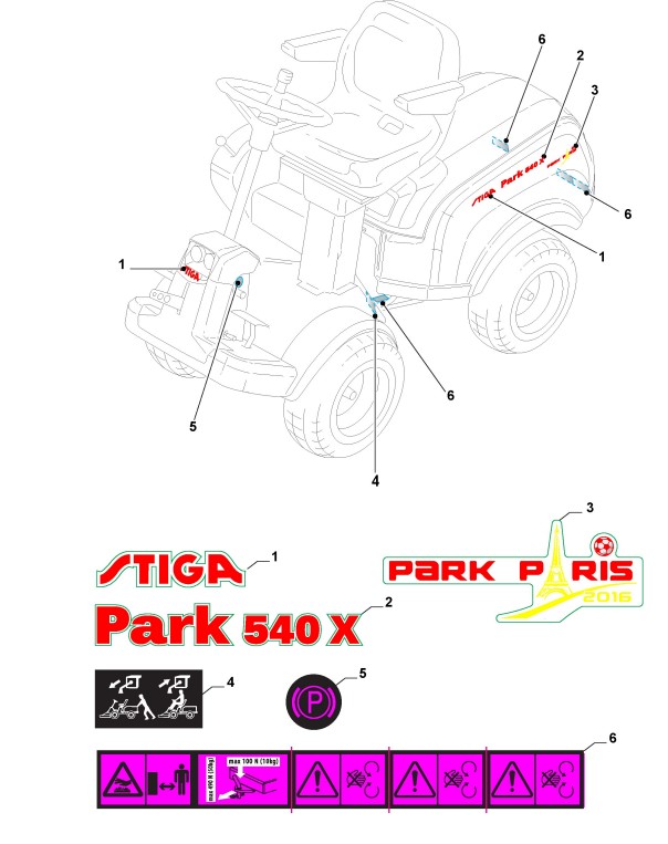 Zeichnungen von Stiga Frontaufsitzmäher Park Consumer High mit Geräte Nr. 2F6230625/S16 ab Baujahr 2016