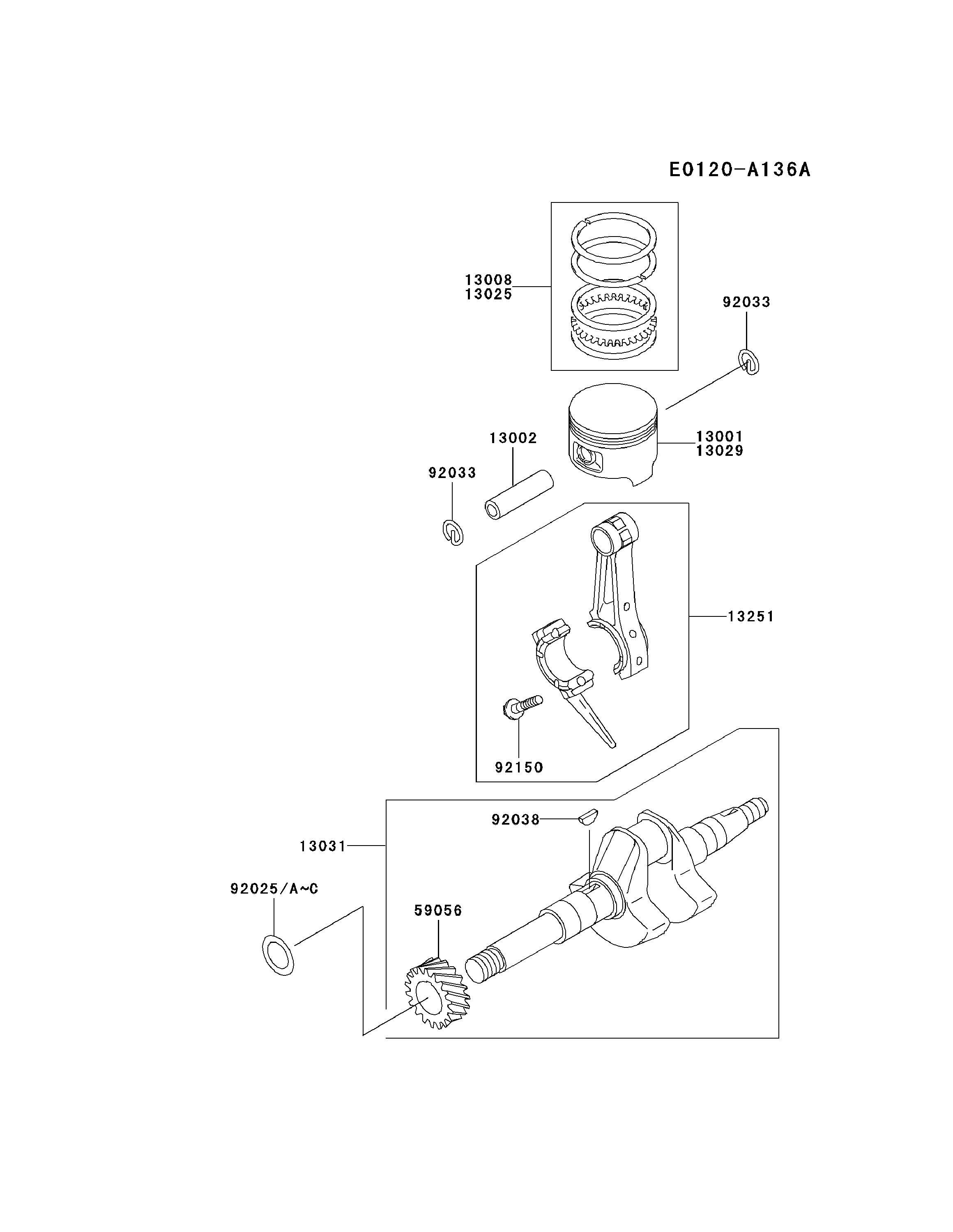 Hier finden Sie alle Ersatzteile von Kawasaki Wasserpumpe HD080A-BS00 (KWS30A) aus der Zeichnung Kolben/Kurbelwelle: