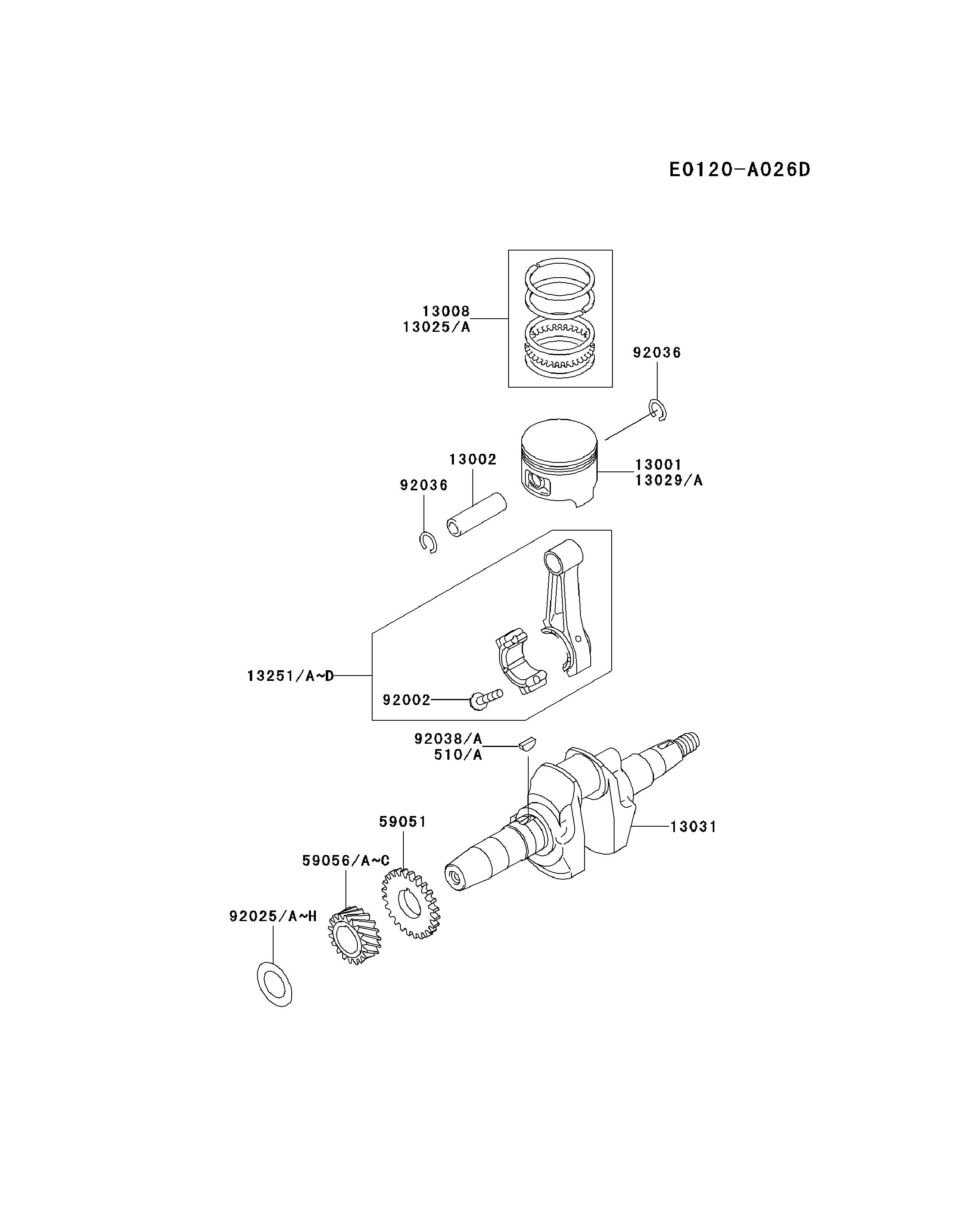 Hier finden Sie alle Ersatzteile von Kawasaki Generatoren GER30A-AS01 (GE4300A) aus der Zeichnung Kolben / Kurbelwelle: